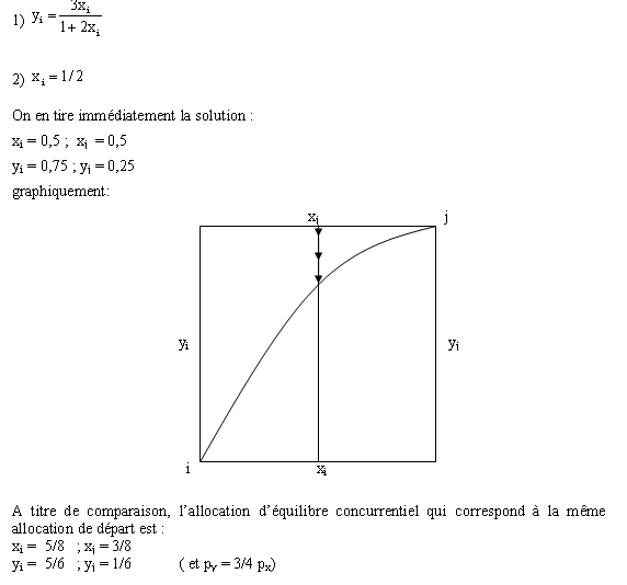i et j connaissent donc l'ensemble des points optima, c'est à dire qu'ils connaissent la courbe des contrats. Le choix social consiste pour i et pour j à sélectionner, en toute connaissance de cause, un de ces points optimaux parmi tous.